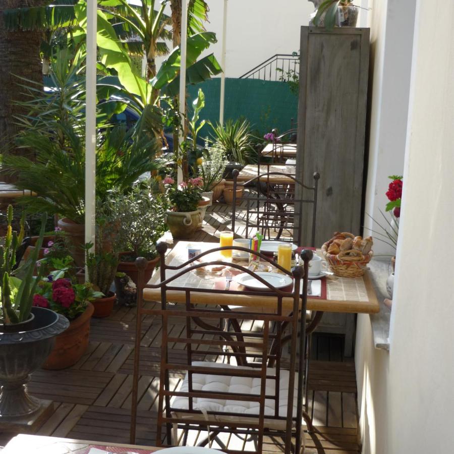 Die allgemeine Stimmung pflegt eine subtile Balance zwischen Intimität und Gastfreundschaft. Schon in den frühen Morgenstunden erwacht der Garten sanft, getaucht in die wechselnden Farben des azurblauen Himmels. Hier, auf der Terrasse oder im Speisesaal, wird das Frühstück serviert. Frisches Obst, Gebäck, Käse, Eier oder knuspriges Brot: Der Tisch spiegelt den Geschmack für einfache, großzügige und mit Sorgfalt durchdachte Dinge wider.
