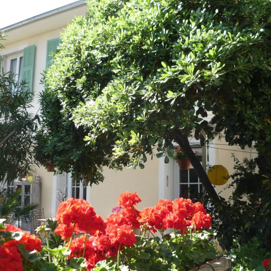In diesem intimen Rahmen wird der Garten schnell zu einem Rückzugsort. Obstbäume, mediterrane Pflanzen, schattige Ecken: Alles trägt dazu bei, einen lebendigen Raum zu schaffen, der zum Lesen, Unterhalten oder einer Pause abseits des städtischen Trubels einlädt. Die schattige Terrasse lädt dazu ein, die Morgenstunden zu verlängern oder am Abend ein Glas zu genießen.