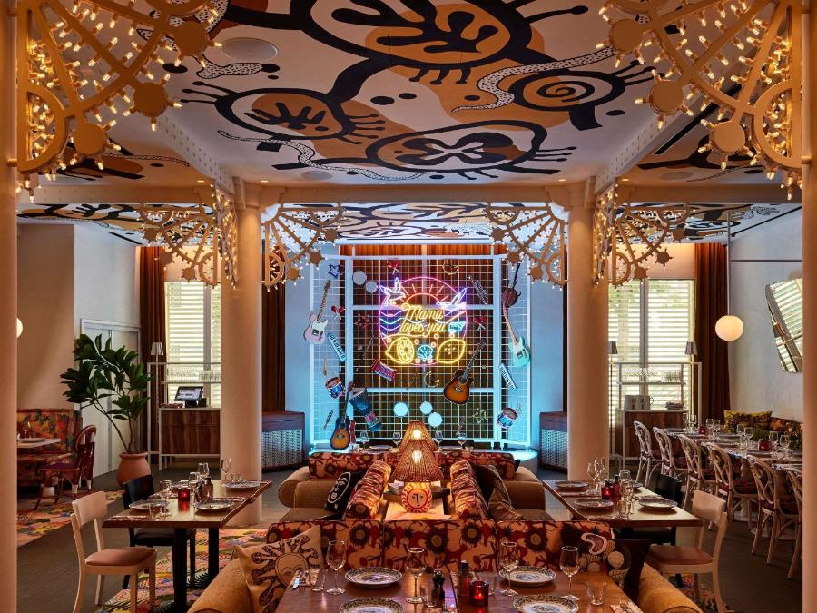 On the ground floor, the restaurant buzzes from morning to evening in a setting inspired by the great names of Nice's art scene. Warm furnishings, hand-painted frescoes, and luminous installations create a lively and graphic ambiance. The menu highlights homemade Mediterranean cuisine, from sharing boards to dishes cooked on the Argentine grill. On weekends, a generous brunch attracts both hotel guests and local Niçois alike.