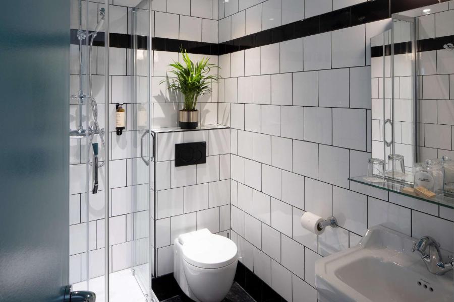 The revisited Art Deco style gives the whole place a unique touch. In the common areas, velvet seating, noble materials, and muted tones create a warm atmosphere, punctuated with meticulous details, such as the suspended mirror above the marble bar or the lighting effects that highlight the interior architecture. The impression of elegance continues upstairs, with a cohesive and contemporary decoration.