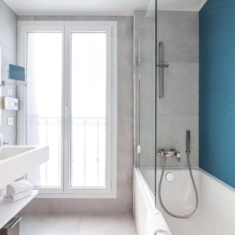 Cada baño dispone de una ducha o bañera según la categoría elegida, secador de pelo y productos de cortesía. Las habitaciones Clásica y Confort son perfectas para una estancia en solitario o en pareja, mientras que las categorías Superior y Deluxe ofrecen más espacio, especialmente para quienes desean trabajar o alojarse en pareja con mayor comodidad. Las suites, diseñadas para alojar hasta cuatro personas, ofrecen un dormitorio principal con cama king size, una habitación contigua con sofá cama, así como un amplio baño equipado con una bañera independiente y una ducha a la italiana.
