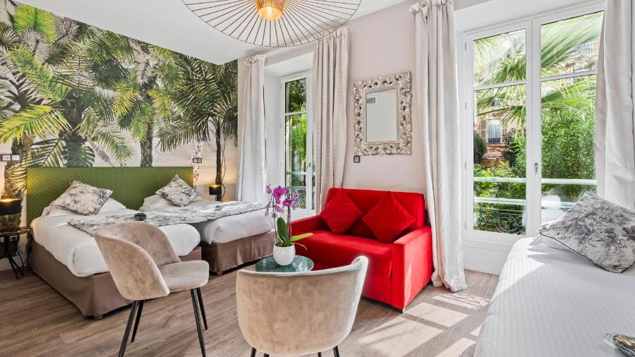 Detrás de la elegante fachada de un edificio Belle Époque, el Hotel Villa Victoria ofrece un entorno propicio tanto para el descanso como para el descubrimiento. Lejos del bullicio pero conectado con la vida de la ciudad, este establecimiento se encuentra en una atmósfera discreta y cuidada. El entorno encanta por la presencia de un amplio jardín arbolado, algo poco común en el centro de la ciudad, donde es agradable relajarse a la sombra de las palmeras o comenzar el día con un desayuno en la terraza.