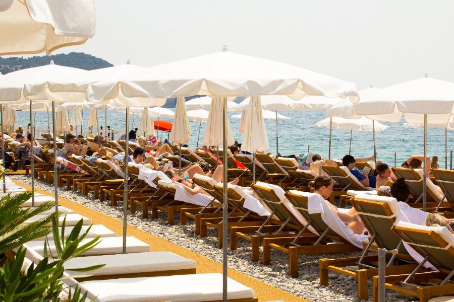 Como cliente del hotel, tiene la posibilidad de reservar una tumbona en la playa Bocca Mar, ubicada a pocos minutos a pie en el Paseo de los Ingleses. Esta playa privada también ofrece un servicio de restauración al mediodía y por la noche, así como un bar ideal para disfrutar de un cóctel frente a la puesta de sol. La recepción está a su disposición para realizar las reservas.