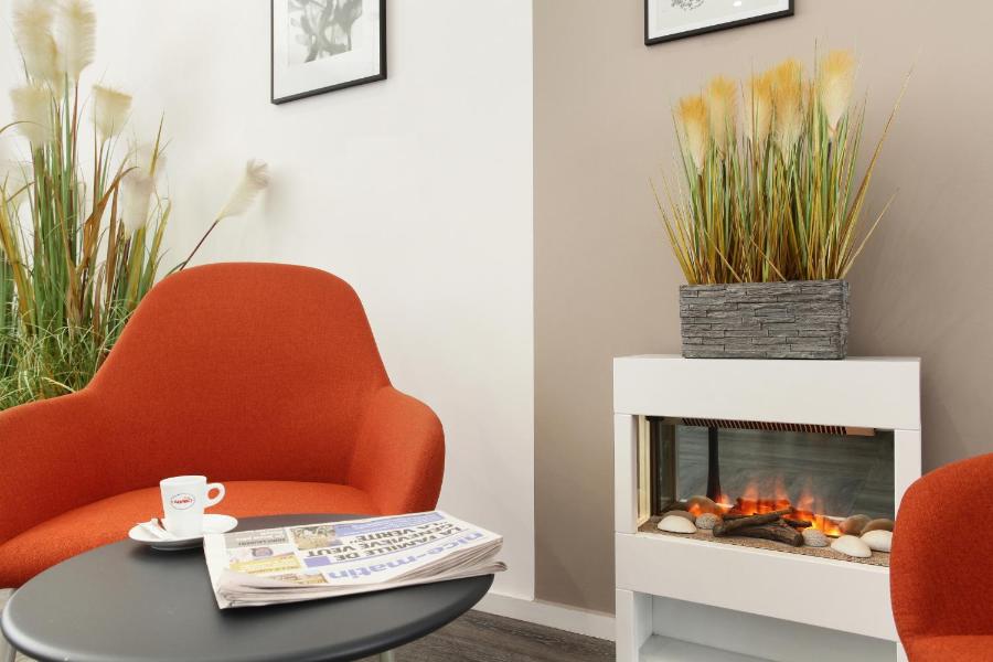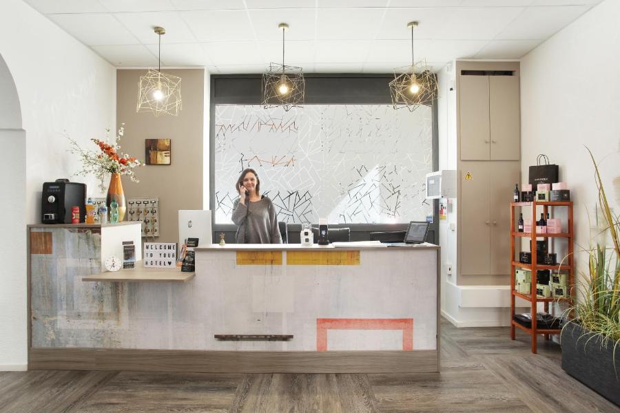 L’établissement accueille ses hôtes dans un cadre à la fois moderne et chaleureux. L’ambiance générale mise sur la sobriété d’un décor urbain, ponctué de touches contemporaines qui renforcent l’élégance des espaces. Les trois étages de l’hôtel présentent chacun une identité propre, offrant un léger contraste qui évite toute monotonie sans rompre l’unité visuelle. L’impression de confort se glisse dans la continuité du style, sans surcharge ni artifice.