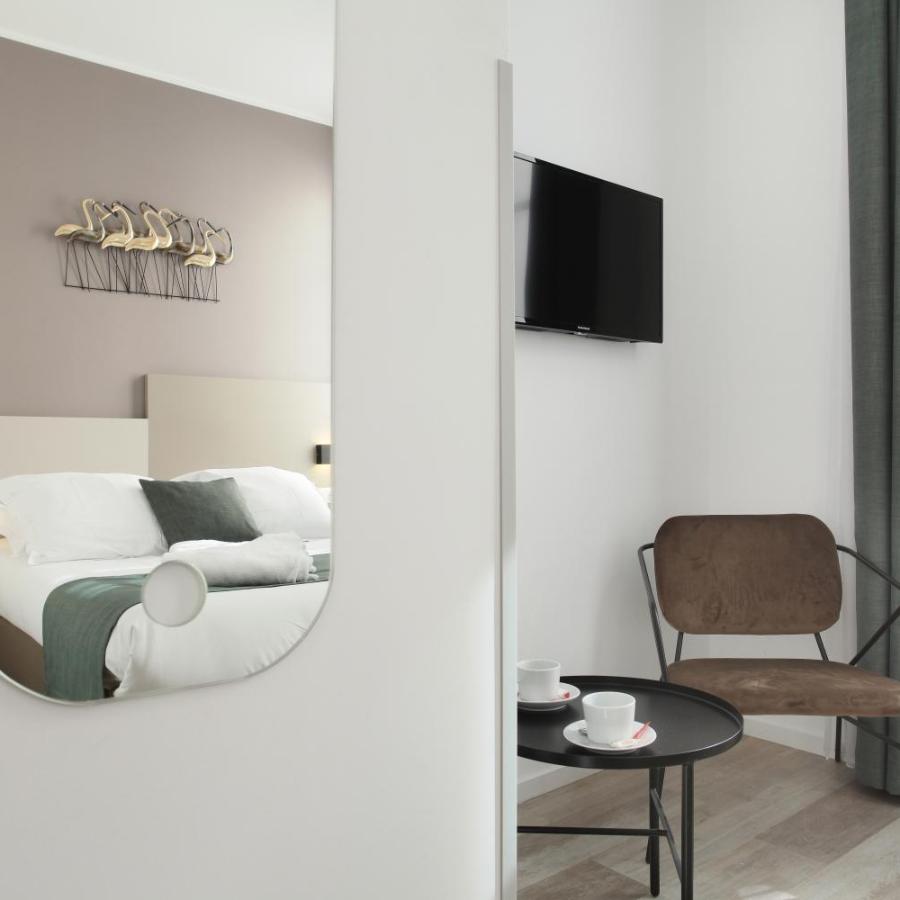 L’atmosphère intérieure privilégie le calme. Grâce à son implantation dans une rue peu passante, l’hôtel reste à l’abri de l’agitation touristique, tout en étant parfaitement relié aux points d’intérêt majeurs de la ville. Le confort acoustique renforce ce sentiment de sérénité, tout comme la qualité de la literie, pensée pour offrir un repos réparateur. La décoration, discrète et contemporaine, invite à un séjour sans tension, dans une ambiance douce et équilibrée.