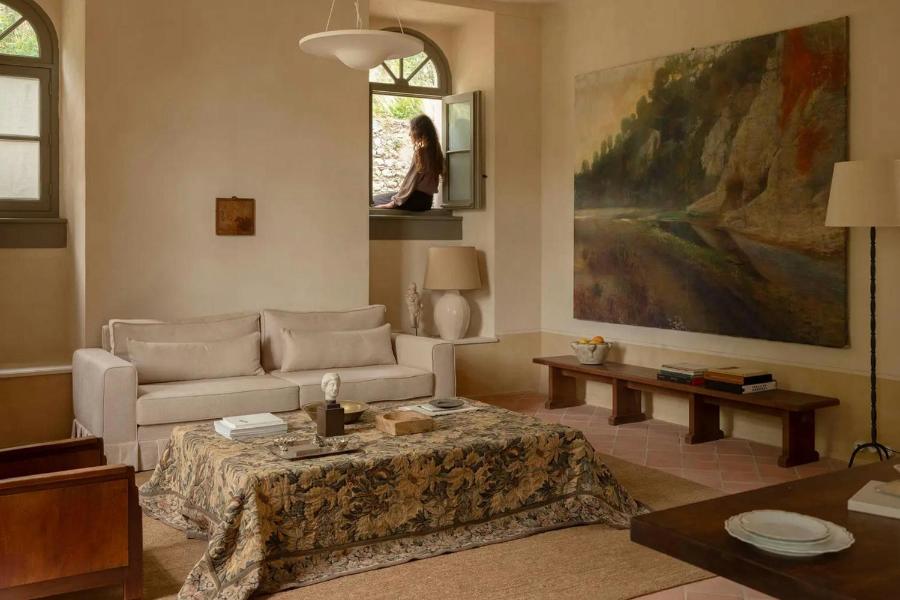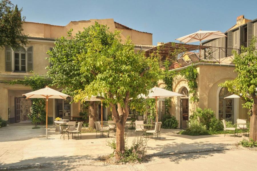 Le domaine s’étend sur près d’un hectare, structuré autour de jardins méditerranéens conçus par le paysagiste Tom Stuart-Smith. Ces espaces plantés de figuiers, d’oliviers, de lavandes et d’agrumes composent un paysage vivant et changeant, dans lequel on se promène, on s’assoit, on respire. Il n’est pas rare d’y croiser un lecteur solitaire, une conversation légère ou l’ombre tranquille d’un chat allongé au soleil.