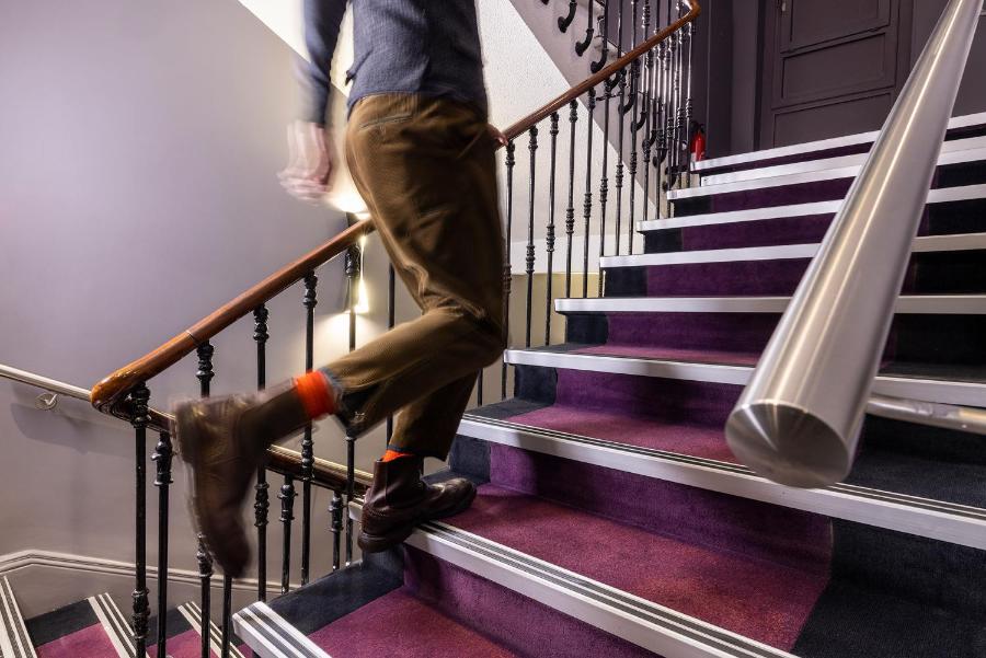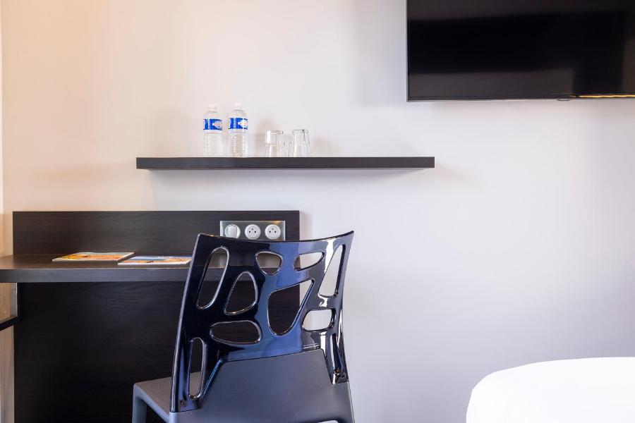 L’hôtel se déploie dans un bâtiment contemporain dont la rénovation récente a mis l’accent sur la fluidité des déplacements. L’ascenseur dessert les étages, facilitant l’accès à toutes les chambres. Les parties communes restent épurées, en accord avec l’identité visuelle du lieu.