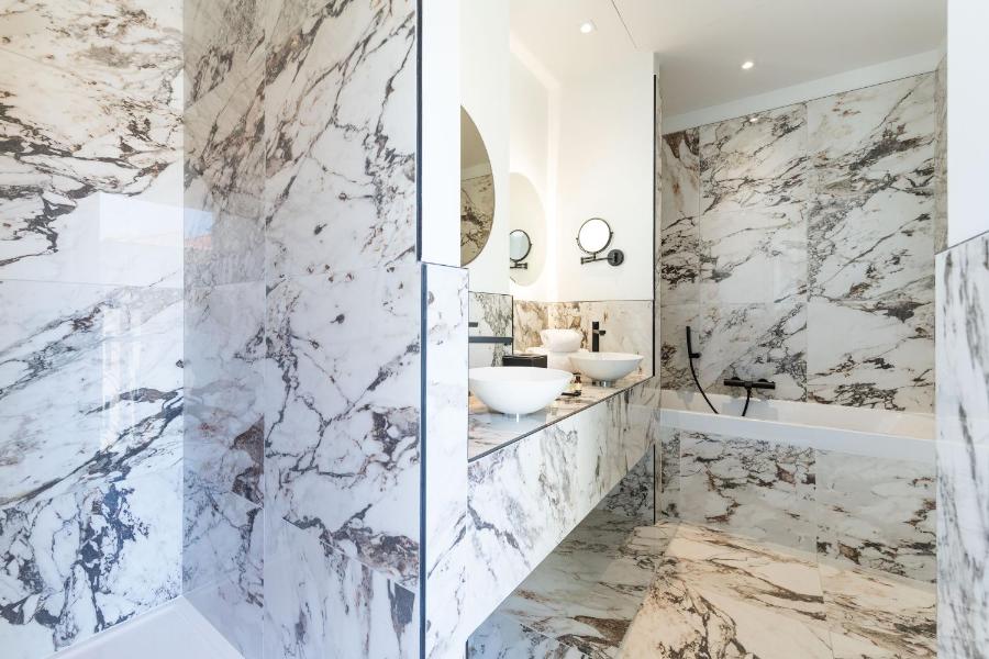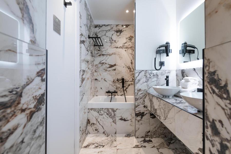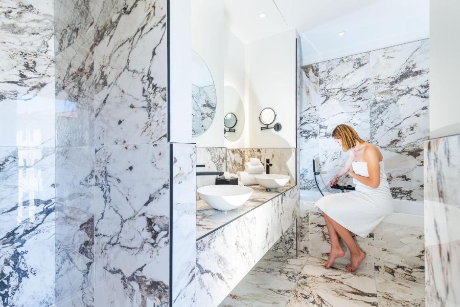 Dans certaines catégories, vous trouverez une baignoire, dans d’autres une douche à l’italienne généreusement dimensionnée. Le marbre y joue avec la lumière et donne à l’ensemble une allure délicate. Un vrai moment pour soi, qu’on soit en escale rapide ou en séjour prolongé. Si vous venez accompagnée, l’ambiance invite autant à la complicité qu’à la détente.