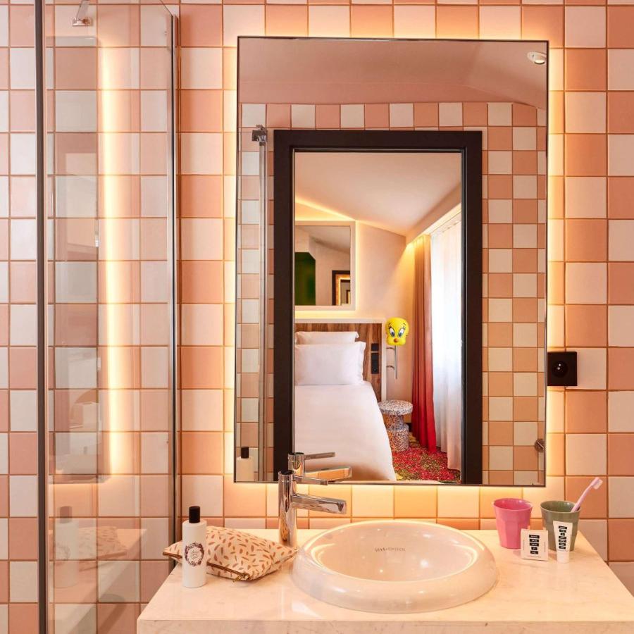 Pensate come veri e propri rifugi urbani, le camere sono dotate di attrezzature pratiche: schermo piatto con film su richiesta, scrivania, cassaforte, Chromecast integrato, Wi-Fi ad alta velocità, senza dimenticare le maschere di cartoni animati vendute in boutique, un segno distintivo giocoso del marchio. Alcune camere possono essere organizzate in configurazione twin, e sono disponibili gratuitamente lettini per bambini su richiesta. È garantita un’accoglienza multilingue a tutte le ore e gli animali domestici sono ammessi senza supplemento.